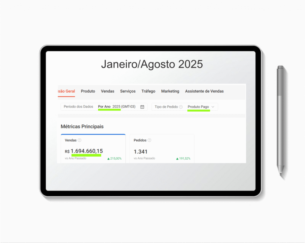 Iniciamos todas estratégias desde o cadastro da conta, anúncios, divulgações, suporte ao cliente e várias ações para alavancar as vendas da empresa. O resultado foi: Em 4 meses começaram a vender, no início de 2024 contrataram um funcionário e começaram a planejar a abertura da fábrica em um local mais apropriado. Ainda em 2024 montaram uma fábrica com equipamentos novos, contrataram mais funcionários, começaram a vender em mais uma plataforma, dobraram a produção e atingiram o marco de R$ 997.000,00 vendidos.